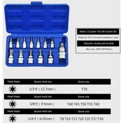 BGS TECHNIC Bit Socket Set For Torx Plus – 6,3mm (1/4) – With T10/T50 Hole – 9 Pcs – 2165