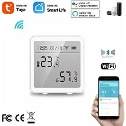 XINUY Smart WiFi Thermometer Hygrometer + Bluetooth Temperature And Humidity Sensor With Indoor/Outdoor Backlight, Tuya APP Control(White)