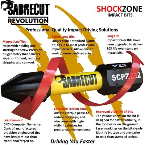 SabreCut Revolution ShockZone Impact Rated Screwdriver Bits With Torsion Drive – Driving You Faster
