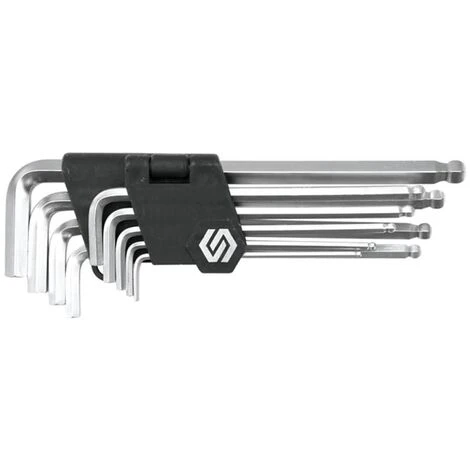 This set of 9 Hex Allen keys has ball-type end and is delivered in practical and handy plastic hanger.