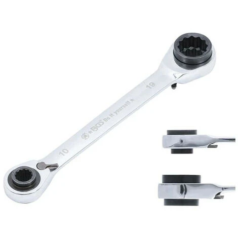 Presentation:BGS 4-in-1 Ratchet Wrench – 30007, this ratchet wrench is very versatile and replaces 4 wrenches by itself, saving space in your workshop.Advantages:4-in-1 Ratchet WrenchReversibleFeatures:4-in-1 Ratchet Wrench: 10 x 13 – 17 x 19 mmWeight: 240 gMaterial: chrome-vanadium steelPackaging:One BGS 4-in-1 Ratchet Wrench – 30007Delivered in its original package