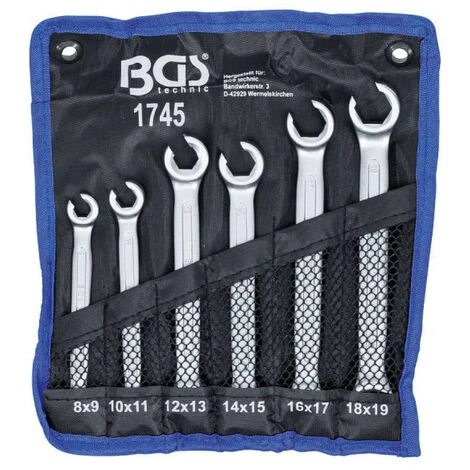 Presentation: This BGS TECHNIC Pipe Wrench Set – 1745 consists of 6 pipe wrenches from 8×9 to 18×19 mm, to efficiently perform your pipe work. Different sizes to work on more pipes, these wrenches will grip the pipe efficiently without damaging it. Cold forged and matte chrome plated, these wrenches come in a well organized case for easy carrying of tools. Made of chrome vanadium steel, these wrenches are corrosion resistant and provide durability for heavy use. With BGS Technic, a German expert in the industry for almost 50 years, be assured of professional quality equipment. Benefits: Professional quality parts Different wrench sizes Good grip on hoses Strong and durable parts for intensive use Ideal kit for travel Features: Cold forged Matt chrome plating Open ring side inclined at 15 In a tetron roll bag Size of bag: 23.5 x 8 x 8 cm Composition: Chrome vanadium steel Weight : 744g Double ended polygonal wrenches open, 8 x 9 mm Double ended polygonal wrenches open, 10 x 11 mm Double ended polygonal wrenches open, 12 x 13 mm L-wrenches double ended open, 14 x 15 mm L-wrenches, double ended, open, 16 x 17 mm Double ended polygonal wrenches open, 18 x 19 mm Packaging : BGS TECHNIC Pipe Wrench Set – 8×9 / 18×19 mm – 6 pcs – 1745Delivered in original packaging