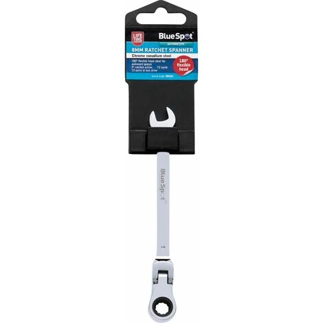 BlueSpot Flexible Ratchet Spanners feature 180 degree pivoting ratchet ring heads.