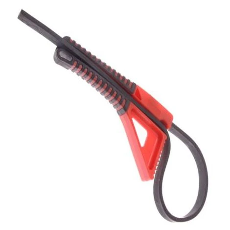 - Both strength and flexibility are provided by the braided rubber strap, which fits into a slot in the handle