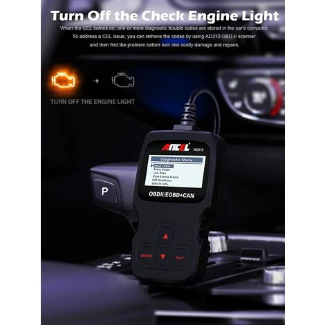 Accurate Fast and Easy to Use: The AD310 scanner can help you or your mechanic understand if your car is in good condition, provides exceptionally accurate and fast results, reads and clears engine trouble codes in seconds. If you want to find out the cause of the check engine light, this device will let you know immediately and fix the problem right away without any car knowledge. No need for batteries or a charger, get power directly from the OBDII Data Link Connector in your vehicle.