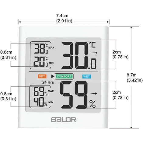 | <table style=”border-collapse: collapse; width: 54.02pt;” border=”0″ width=”72″ cellspacing=”0″ cellpadding=”0″> <tbody> <tr style=”height: 15.75pt;”> <td style=”height: 15.75pt; width: 54.00pt;” width=”72″ height=”21″><ul><br /><li><strong>【High Accuracy &amp; Fast Refresh】</strong>updated room thermometers provides large measuring range, which measures the temperature from 0℃ ~ 50℃ (14℉ ~ 122 ℉), temperature accuracy: &plusmn;1℃;measures the humidity from 10% RH to 99% RH, accuracy: 1% ~ 99% , beside this range, humidity accuracy is &plusmn;3%. With 27 vents and sensitive sendors, this large screen indoor thermometer can refresh readings within 3 seconds. Suitable for room, bedroom,baby room, nursery room, greenhouse, office and wine cellar</li><br /><li><strong>【Touch Backlight &amp; 3.05in Large Screen】</strong> With a 3.05 inches large display, the thermometer room temperature monitor can be read from any angle and distance much easier. What’s more, this humidity meter features touch backlight.Touch the top to turn on/off the backlight, and it will automatically turn off 10 seconds later.This function make this humidity gauge Indicator easy to read monitoring in dark condition.In addition, we also have a direct measurement product that you may need< 【Comfort Level &amp; Trend Indicator】</strong>The thermometer hygrometer features 3 levels of icons: wet/comfort/dry, which display the different levels of temperature and humidity based on the air condition. In addition,this digital room thermometer also displays the change trend for each reading. Allows you to keep an eye on home health, and easier make actions for room climate comtrol</li><br /><li><strong>【Three Flexible Placement Methods】</strong>The room thermometers can be placed directly on the desk with the folding bracket on the back, or installed on the wall with the hanging holes on the back of the thermometer hygrometer. More practical is that the humidity meter room thermometer can be attached anywhere on the forge with a magnet.</li><br /></ul></td> </tr> </tbody> </table> <p> </p> |