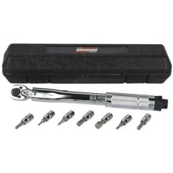 This torque spanner set from BrĂ¼der Mannesmann will come in very handy in your garage or workshop. With this torque spanner set, you can easily and very accurately fasten bolts in situations where the correct torque is of the essence.