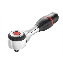 The twist handle design allows the operator to work in the tightest of spaces, only having to move the wrist slightly to rotate the handle and the drive, rather than moving from the elbow, saving time, effort and money. The convenient drive direction switch allows use in both left and right directions and the ratchet secures sockets firmly in place until the quick release button is activated.