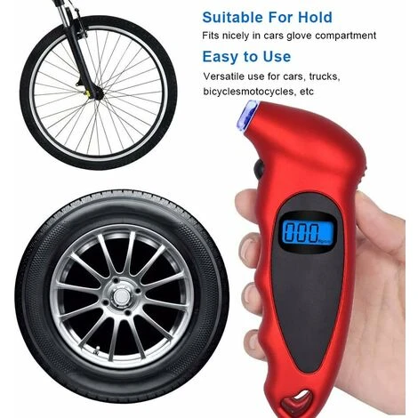 Digital Tire Pressure Gauge helps you maintain proper tire pressure, reduce tire wear and extend tire life. The backlit LCD screen and illuminated nozzle are for visibility in low light areas and the precise, easy to read numbers help you gauge your vehicle’s tire pressure.