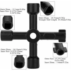 Features: Multi-functional 4-way universal wrench is a handy tool for plumbers, electricians, etc. Manufactured in made from a zinc alloy with an electrolytic polishing surface, it is durable and rust resistant. Designed for control cabinets and shut-off systems in gas, water and electricity supply. Suitable for the elevator, electrical box, train door, water meter valve, etc. With its compact size and lightweight body, it can be hung on the key chain for easy carrying.