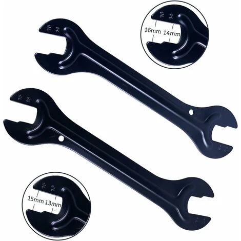 - Ideal bike mechanic: 4 in 1 cone wrench, one side: 13/15mm, the other side: 14/16mm. Key length: about 200mm/7.88″”. Thickness: 2mm/0.06. Weight: 115g.