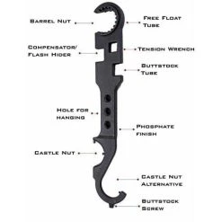 AR15/M4 multi-tool combination wrench compatible with most M16, M4 and Ar rifle variants.