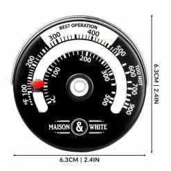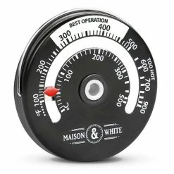 The Maison & White Magnetic Stove Thermometer is the ideal tool for optimizing the efficiency of your fireplace. If your fire is burning too hot or cold you won’t have an optimum burn and could be running through fuel at a pace much quicker than necessary. A good air to fuel ratio is important and the temperature is an indicator of this. Use the thermometer to have a constant, clear indication of the burning temperature of your fire and so you can adjust the amount of fuel and air to create an optimum burn. The thermometer features a magnetic back so you can stick it directly onto your stove or flue pipe, giving the most accurate reading. Â