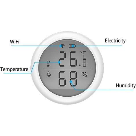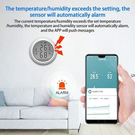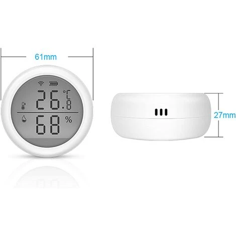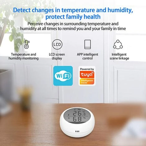 8. Split design, high reliability the gateway, temperature and humidity sensor; can be related to other smart home devices to improve indoor heating and cooling and make your home more comfortable low utility to ensure long battery life long-termThe built-in high-precision digital sensor can quickly and accurately detect changes in temperature and humidity . The LCD screen dynamically displays real-time values, displays the comfortable state of the home environment, and is connected to the footbridge and at the cloud platform and the mobile APP can display the current and historical temperature data. Supports Google Home and Alexa. Package Contents: Sensor * 1