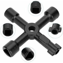 4 Way Key – Radiator Bleed Key, Utility Key Gas Electric Box Gas Meter Key for, Utility Key Panel Multi-Function Key Electrical Cabinet Key(Black)Description:Specification: Material: Zinc alloy Color: Black Size: 6.5 x 6.5 x 1.2 cm Weight: 55 g Package includes: 1 x 4-way utility wrench Durable material: This black utility wrench is cross-shaped design, made of zinc alloy good quality, sturdy and durable, you can apply it for a long time.Functions:The utility counter key has 4 different shapes, which can open boxes, counters, cabinets as long as according to the size and shape.Easy to carry:Suitable size for you to carry it in your hand or put it in your bag, and there is a hole in the middle of the cross key, it can be hung on the key ring for easy carrying.Usage:Multi-functional keys can be used as a handy turn key. er screws, suitable for many electric, water, gas, train, cabinet, elevator valves, etc. Warm Notice: This utility wrench is not suitable for some types of radiators, please make sure its size match your device before buying.