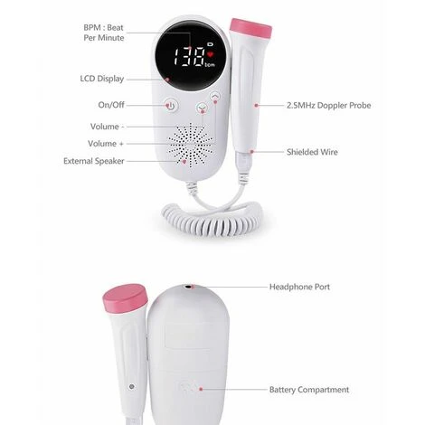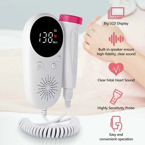 Large LED display, you can see the fetal heart rate, battery capacity and volumes clearly.