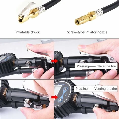 - Leak-Resistant and Valve Extension Design-The real brass air chuck provides excellent sealing on the tire valve outside of car tire and frees your hands to operate the tire pump. /li>