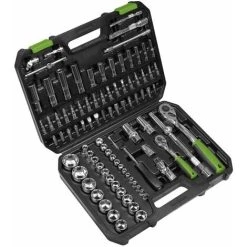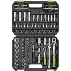 – Includes 72-tooth comfort grip ratchet wrenches, spark plug sockets, extension bars, socket bits, bits, spinner handle and accessories.
