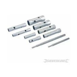 Corrosion-resistant steel. Spanner sizes: 8 x 9, 10, 11, 12 x 13, 14 x 15, 17 x 19 & 21 x 22mm. Includes 14mm spark plug spanner.