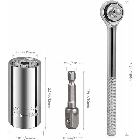 Universal handle grip co.ukom 7mm to 19mm. Fits standard 1/4 to 3/4 and metric 7-19mm nuts and bolt heads