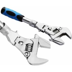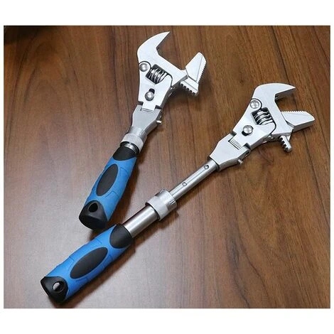 3 in 1 Key Size] The unique handle with extendable design can easily be converted to 10 (about 10 inch), 11 (about 11 inch) and 12 (about 12 inch) wrenches, giving you more options. [180° Adjustable Head] Allows the head to rotate up to 180° to access hard to reach fasteners. [Multi-purpose wrench tool ] thorn tooth design can be less effort. Ratchet switch can use the wrench as a ratchet or a traditional wrench. [Premium] Forged Cr-V Chrome Vanadium Steel is strong and durable. This wrench tool can be used for auto repair, home repair, construction and other industries. It is also popular for DIY design enthusiasts. [Widely used for maintenance] Adjustable wrench fits about 1.77 inch / 45mm jaw opening. Precision machined jaw and knurled adjustment worm accept a variety of fastener sizes. Ideal for the maintenance and repair of household appliances.