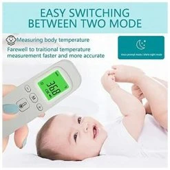 large LCD screen for better reading with three color indicators green for a normal temperature, yellow for the onset of fever and red for a high fever, you can choose the unit of measurement byβ (Celsius) or inβ(Fahrenheit), and choose sound alert for fever or mute mode. , and to save energy, the thermometer stops automatically after a period of inactivity.