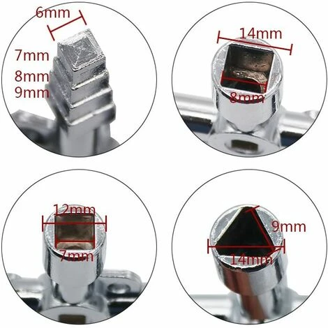 < p>4-Way Multifunction: The utility key contains 4 shapes of meter keys, 2 different sized squares, 1 triangle and 1 different sized solid square keys.