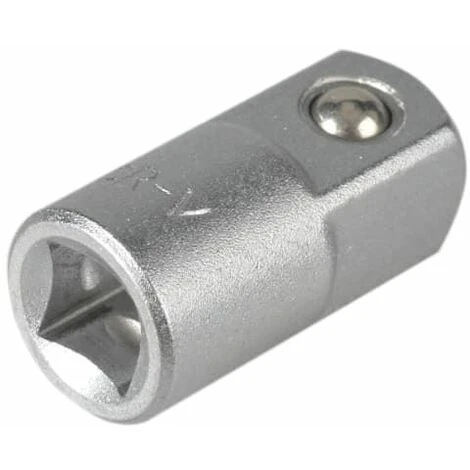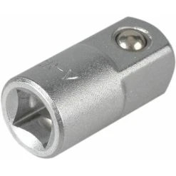 Socket converter 1/4in female to 3/8in male, with T handle hole facility. Made from chrome vanadium steel with a satin finish.