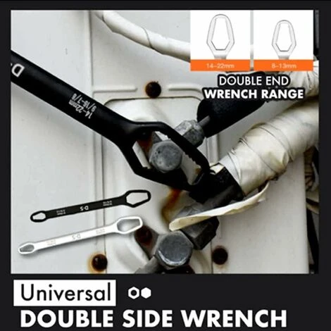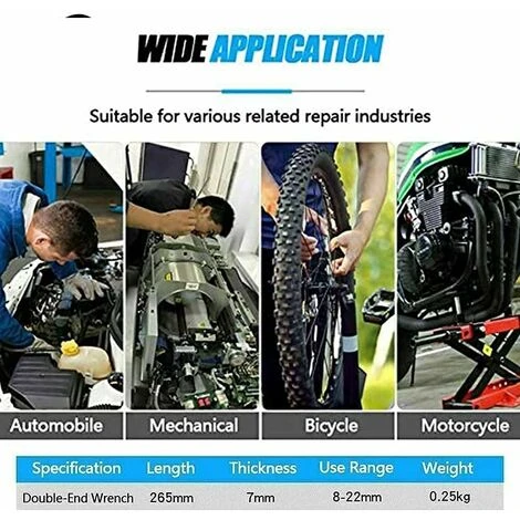 ăDOUBLE END WRENCH RANGEă: Suitable for dismantling screws of various specifications, standard 0.31/0.55 inch to 0.51/0.87 inch and metric 8mm to 22mm nuts and bolts.