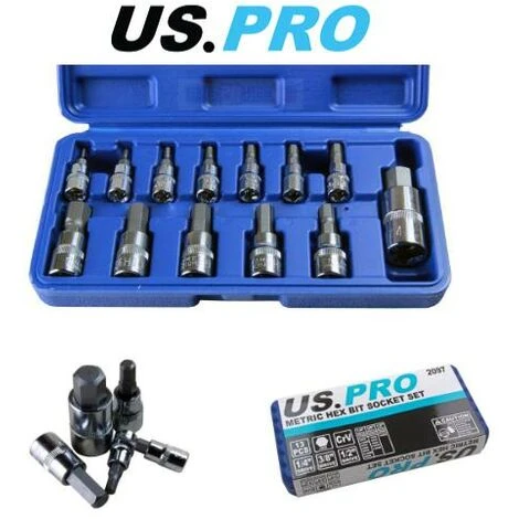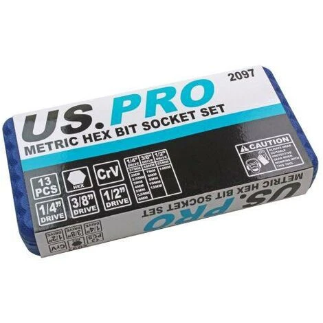 US PRO Tools 13pc Metric Hex Bit Socket Set 2 – 14mm 1/4 3/8 1/2