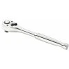 This 8003 C Zyklop Metal ratchet has a slim design, making it ideal for work in confined spaces. Highly robust and has a long service life. The dual ratchet teeth design makes a 76 fine-pitched toothing out of 38 robust teeth, allowing a return angle of only 4.7°. Very simple direction change by actuating the non-detachable push-through square; now also with secure socket locking function.