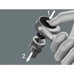 Wera Zyklop Metal-Push Slim ratchets have extremely slim handles and heads, with long leverage. These forged, full metal ratchets are made from chrome molybdenum and are very robust without any torque limitation.