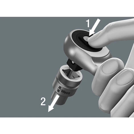 The ratchet has a push-through square drive to change the direction of the ratchet. A secure socket lock mechanism prevents unintentional switchover. The ratchet mechanism has fine teeth, giving small increments of just 5°.